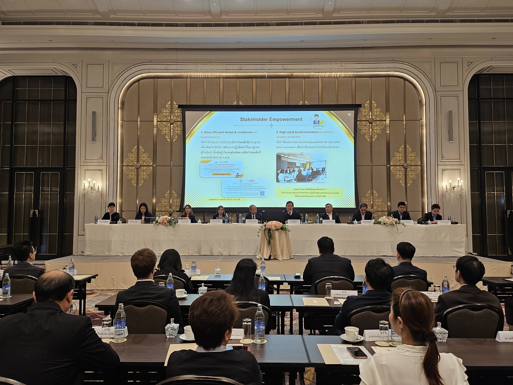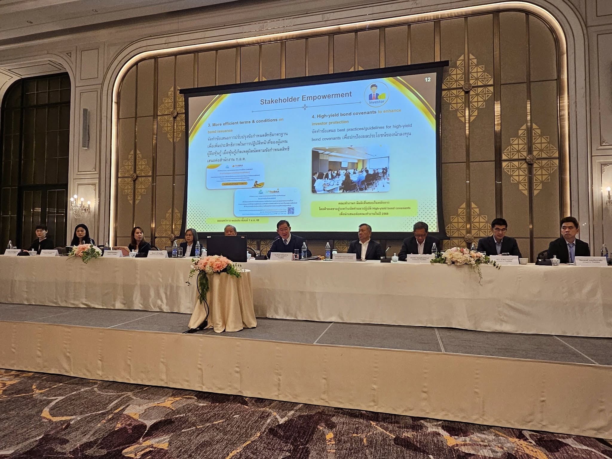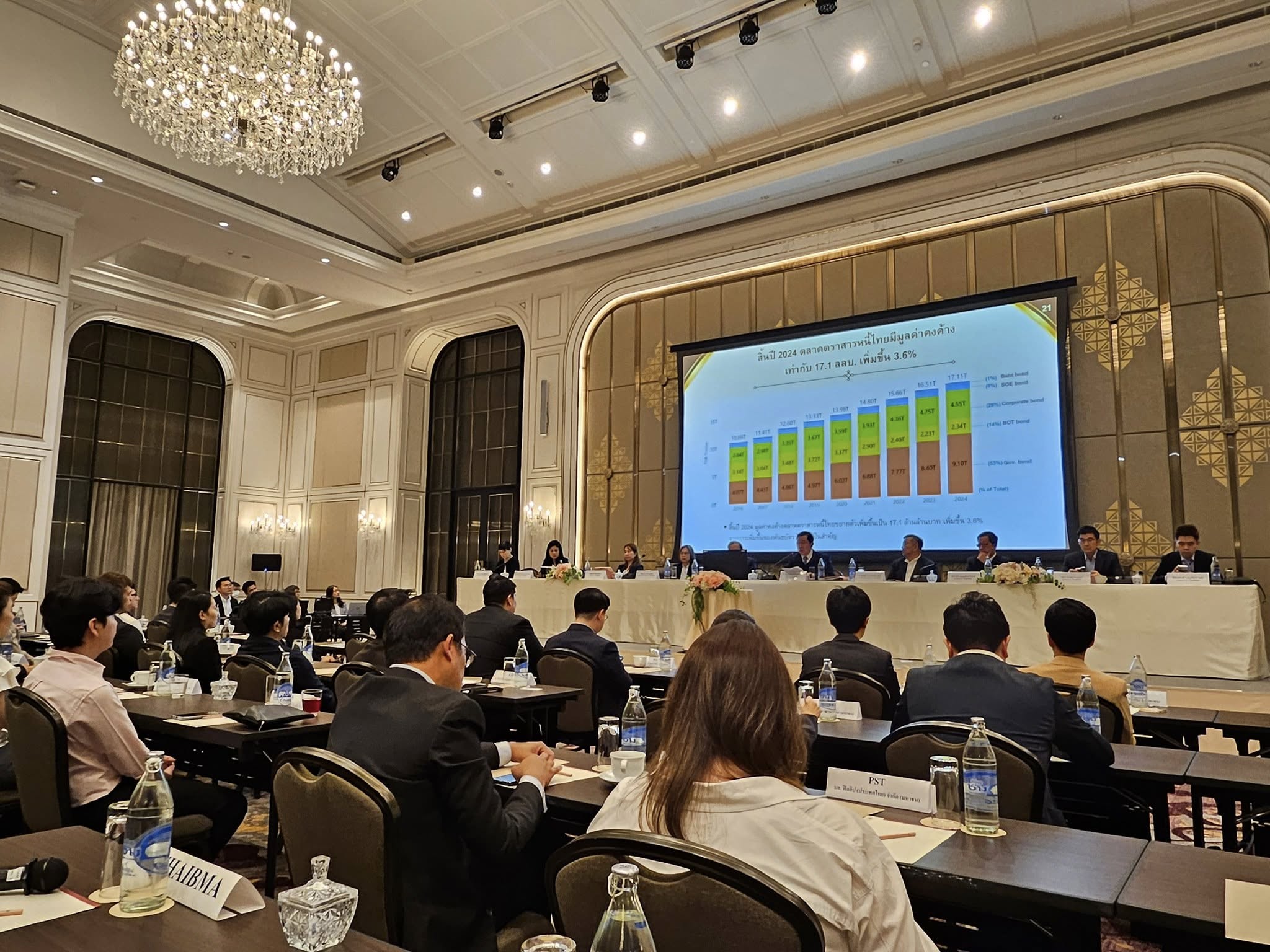 ThaiBMA Gallery ThaiBMA จัดประชุมใหญ่สามัญประจำปี 2568 สมาคมตลาดตราสารหนี้ไทย (ThaiBMA) จัดประชุมใหญ่สามัญประจำปี 2568 ในวันพฤหัสบดีที่ 24 เมษายน 2568 เวลา 11.00-12.00 น. ณ โรงแรมอีสติน แกรนด์พญาไท นำโดย คุณสมหมาย ภาษี ประธานกรรมการสมาคม เป็นประธานในที่ประชุม Back to Main Gallery