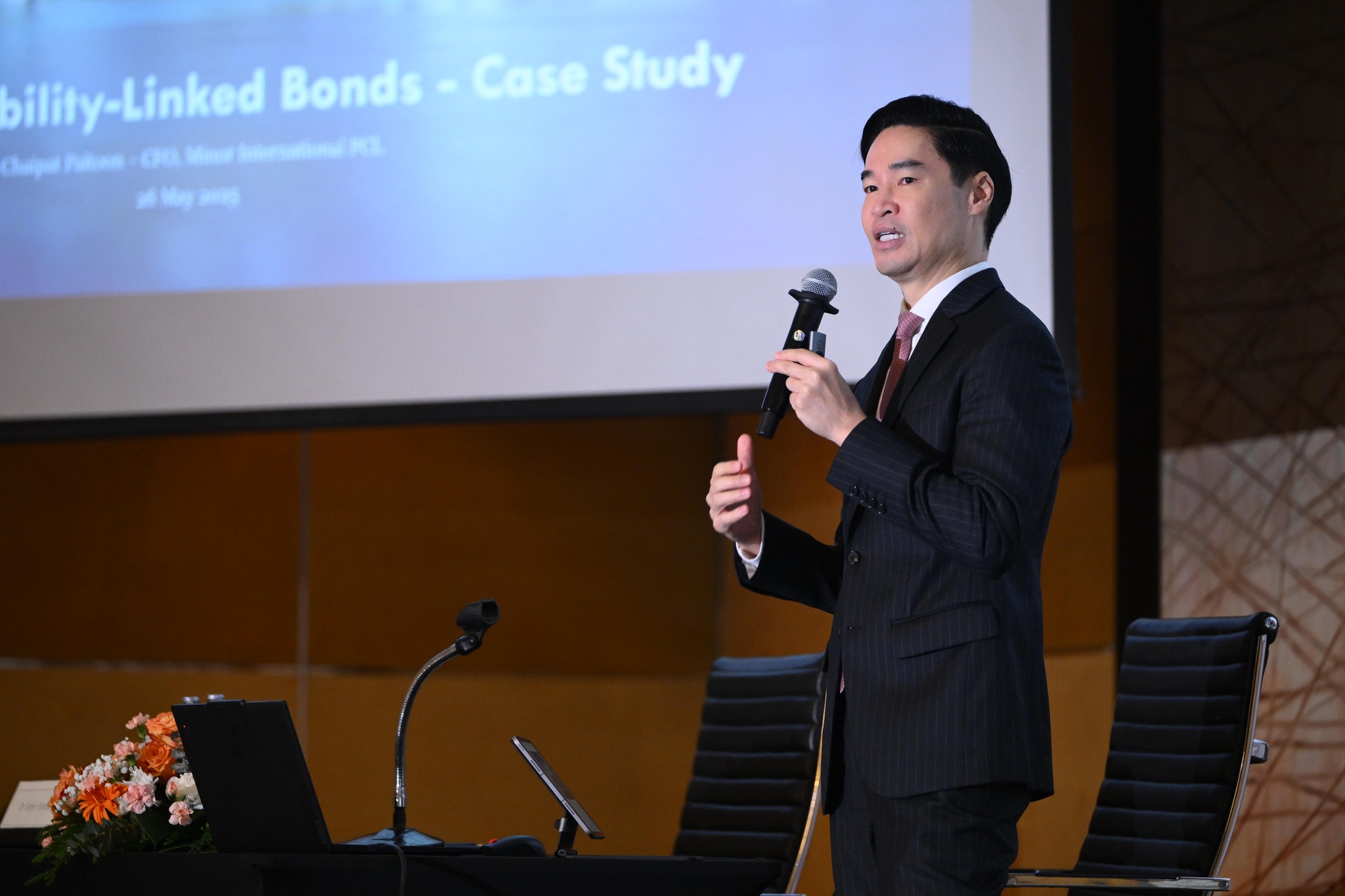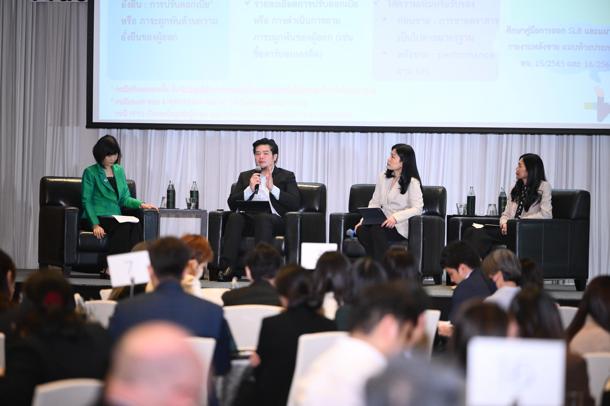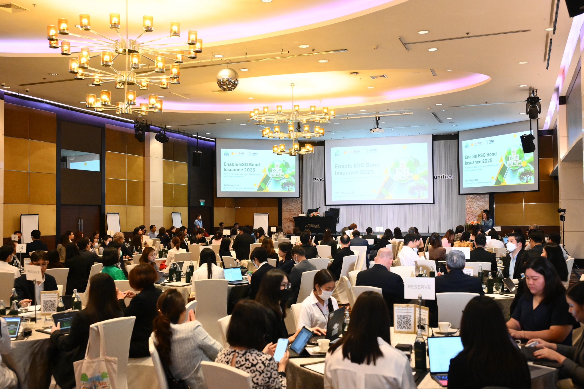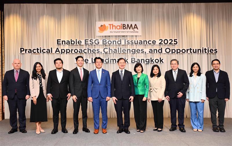 ThaiBMA Gallery ThaiBMA จัดงานสัมมนา “Enable ESG Bond Issuance Seminar 2025: Practical Approaches, Challenges, and Opportunities” 26 พฤษภาคม 2568 สมาคมตลาดตราสารหนี้ไทย (ThaiBMA) ร่วมกับ สำนักงาน ก.ล.ต. และกองทุนส่งเสริมการพัฒนาตลาดทุน (CMDF) จัดงานสัมมนา “Enable ESG Bond Issuance Seminar 2025: Practical Approaches, Challenges, and Opportunities” ขึ้น ณ โรงแรมแลนด์มาร์ค กรุงเทพฯ โดยมีวัตถุประสงค์เพื่อส่งเสริมความรู้ความเข้าใจเกี่ยวกับการระดมทุนผ่านตราสารหนี้กลุ่มความยั่งยืน โดยได้รับเกียรติจากผู้บริหารองค์กรภาครัฐและเอกชนเข้าร่วมเป็นวิทยากรและเแบ่งปันประสบการณ์ โดยมีผู้เข้าร่วมสัมมนากว่า 150 คน จาก 75 องค์กร Back to Main Gallery