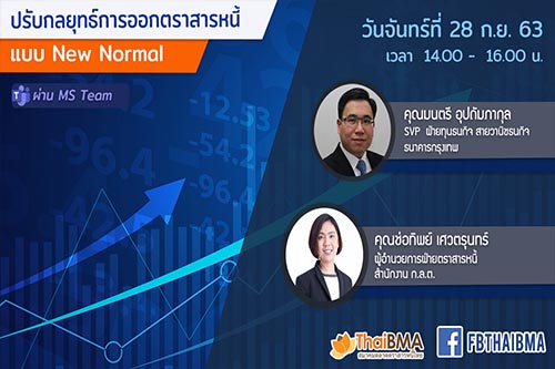 ThaiBMA Gallery ปี 2568 ปี 2567 ปี 2566 ปี 2565 ปี 2564 ปี 2563 ปี 2562 ปี 2561 ปี 2560 ปี 2559 ปี 2558 สิงหาคม 27 ส.ค. ThaiBMA ให้การต้อนรับ Professor Shunsuke Managi จาก Urban Institute, Kyushu University ประเทศญี่ปุ่น 27 สิงหาคม 2568 23 ส.ค. ThaiBMA จัดกิจกรรม CSR แวะช่วยน้อง ล่องเกาะเกร็ด เตร็ดเตร่ชุมชนรามัญ 23 สิงหาคม 2568 18-20 ส.ค. China bond market’s Education trip 18-20 สิงหาคม 2568 15 ส.ค. ผู้แทนจาก สวค. และ UNDP เข้าพบคณะผู้บริหาร ThaiBMA 15 สิงหาคม 2568 8 ส.ค. GGGI นำทีมผู้บริหารจาก LSCO, LSX และธนาคารเพื่อการเกษตรแห่งประเทศลาว เข้าพบผู้บริหาร ThaiBMA 8 สิงหาคม 2568 7-8 ส.ค. การอบรม หลักสูตร Strategic Investment Risk Management 7-8 สิงหาคม 2568 กรกฎาคม 29 ก.ค. คณะผู้บริหารจาก บสย. เยี่ยมชม ThaiBMA 29 กรกฎาคม 2568 20 ก.ค. ThaiBMA ร่วมเป็นวิทยากรในงานสัมมนาวิชาการของชุมนุมสหกรณ์กรุงเทพ 20 กรกฎาคม 2568 17-18 ก.ค. ThaiBMA จัดอบรมหลักสูตร Derivatives and its Applications in Thailand 17-18 กรกฎาคม 2568 14 ก.ค. งานสัมมนา FETCO x ThaiBMA Investment Forum 2025 14 กรกฎาคม 2568 8 ก.ค. ThaiBMA ร่วมการอบรมเชิงปฏิบัติการหัวข้อ “Building Resilient and Efficient Corporate Bond Markets in Growth and Emerging Markets” 8 กรกฎาคม 2568 4 ก.ค. ThaiBMA จัดงานแถลงข่าว สรุปภาวะตลาดตราสารหนี้ไทย ไตรมาสที่ 2 ปี 2568 4 กรกฎาคม 2568 มิถุนายน 28 มิ.ย. ThaiBMA จัดอบรมหลักสูตร Bond Trader Refresher Course 2025 No.1 (รอบชดเชย) 28 มิถุนายน 2568 27 มิ.ย. ThaiBMA จัดอบรมหลักสูตร Bond Mathematics : Essential Concepts & Tools 27 มิถุนายน 2568 23 มิ.ย. Climate Bonds Initiative (CBI) ร่วมกับ ThaiBMA ได้จัดงานสัมมนา "Transition Plans: Designing and Understanding Credibility Workshop" 23 มิถุนายน 2568 17 มิ.ย. คณะพาณิชยศาสตร์และการบัญชี จุฬาลงกรณ์มหาวิทยาลัย ร่วมกับสถานเอกอัครราชทูตไทย ณ กรุงบรัสเซลส์ และตลาดหลักทรัพย์ลักเซมเบิร์ก 17 มิถุนายน 2568 16 มิ.ย. เอกอัครราชทูต ณ กรุงบรัสเซลส์ พร้อมกับผู้เชี่ยวชาญด้านการเงินเพื่อความยั่งยืนจากตลาดหลักทรัพย์ลักเซมเบิร์ก เข้าพบ ThaiBMA 16 มิถุนายน 2568 16 มิ.ย. คณะผู้บริหารจากบริษัทหลักทรัพย์ ดาโอ จำกัด (มหาชน) เข้าพบผู้บริหาร ThaiBMA เพื่อหารือเกี่ยวกับบทบาทของ “ผู้แทนผู้ถือหุ้นกู้” 16 มิถุนายน 2568 พฤษภาคม 29 พ.ค. ThaiBMA ร่วมกับ SEC จัดประชุม Dialogue รับฟังความคิดเห็น เพื่อพัฒนาแนวทาง High-yield Bond Covenants 29 พฤษภาคม 2568 26 พ.ค. งานสัมมนา “Enable ESG Bond Issuance Seminar 2025: Practical Approaches, Challenges, and Opportunities” 26 พฤษภาคม 2568 23 พ.ค. งานสัมมนา “Advancing Transition Finance” 23 พฤษภาคม 2568 17 พ.ค. ThaiBMA ร่วมเป็นส่วนหนึ่งของโครงการ Software Park - WealthMagik เงินออมสร้างชาติ Awards Season 10 17 พฤษภาคม 2568 14 พ.ค. มหาวิทยาลัยเชียงใหม่ ได้เข้าร่วมประชุมกับ ThaiBMA 14 พฤษภาคม 2568 8-9 พ.ค. ThaiBMA จัดอบรมหลักสูตร Bond Market Analysis 8-9 พฤษภาคม 2568 เมษายน 24 เม.ย. ThaiBMA จัดประชุมใหญ่สามัญประจำปี 2568 24 เมษายน 2568 23 เม.ย. ทีมวิจัยจากบริษัท Deloitte เข้าพบผู้บริหาร ฝ่ายวิจัยฯ และฝ่ายกฎหมายของThaiBMA 23 เมษายน 2568 22 เม.ย. ธนาคาร BNP Paribas เข้าเยี่ยมและแสดงความยินดี เนื่องในโอกาสการเปิดสำนักงานแห่งใหม่ 22 เมษายน 2568 11 เม.ย. ครบรอบ 30 ปี ThaiBMA ร่วมส่งต่อโอกาสทางการศึกษา 11 เมษายน 2568 03 เม.ย. ThaiBMA จัดงานแถลงข่าว สรุปภาวะตลา