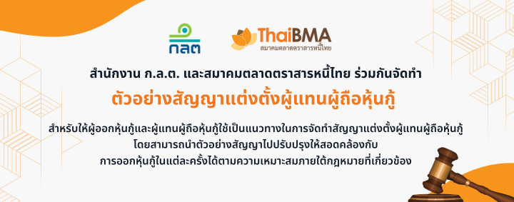 สำนักงานคณะกรรมการกำกับหลักทรัพย์และตลาดหลักทรัพย์ร่วมกับสมาคมตลาดตราสารหนี้ไทย จัดทำตัวอย่างสัญญาแต่งตั้งผู้แทนผู้ถือหุ้นกู้ เพื่อเป็นตัวอย่างให้ผู้ออกหุ้นกู้และผู้แทนผู้ถือหุ้นกู้ใช้เป็นแนวทางในการจัดทำสัญญาแต่งตั้งผู้แทนผู้ถือหุ้นกู้ต่อไป เพื่อให้มีมาตรฐานในการกำหนดกรอบอำนาจหน้าที่และความรับผิดชอบระหว่างผู้ออกหุ้นกู้และผู้แทนผู้ถือหุ้นกู้ รวมถึงส่งเสริมและลดอุปสรรคในการปฎิบัติหน้าที่ของผู้แทนผู้ถือหุ้นกู้ และเพื่ออำนวยความสะดวกและลดต้นทุนในการจัดทำสัญญาแต่งตั้งผู้แทนผู้ถือหุ้นกู้ โดยผู้ออกหุ้นกู้สามารถนำตัวอย่างสัญญาไปปรับปรุงให้สอดคล้องกับการออกหุ้นกู้ในแต่ละครั้งได้ตามความเหมาะสมภายใต้กรอบของกฎหมายและประกาศที่เกี่ยวข้อง